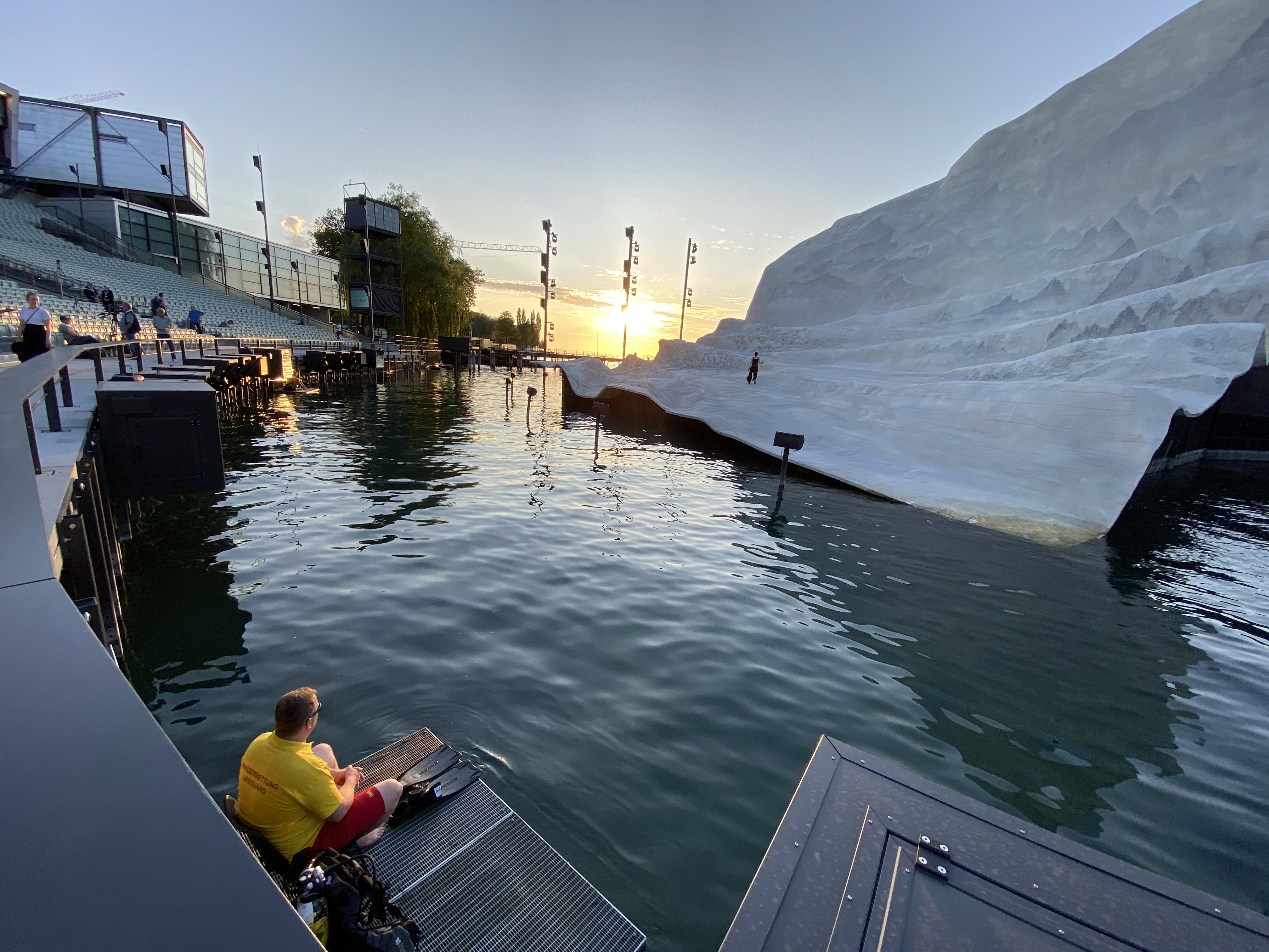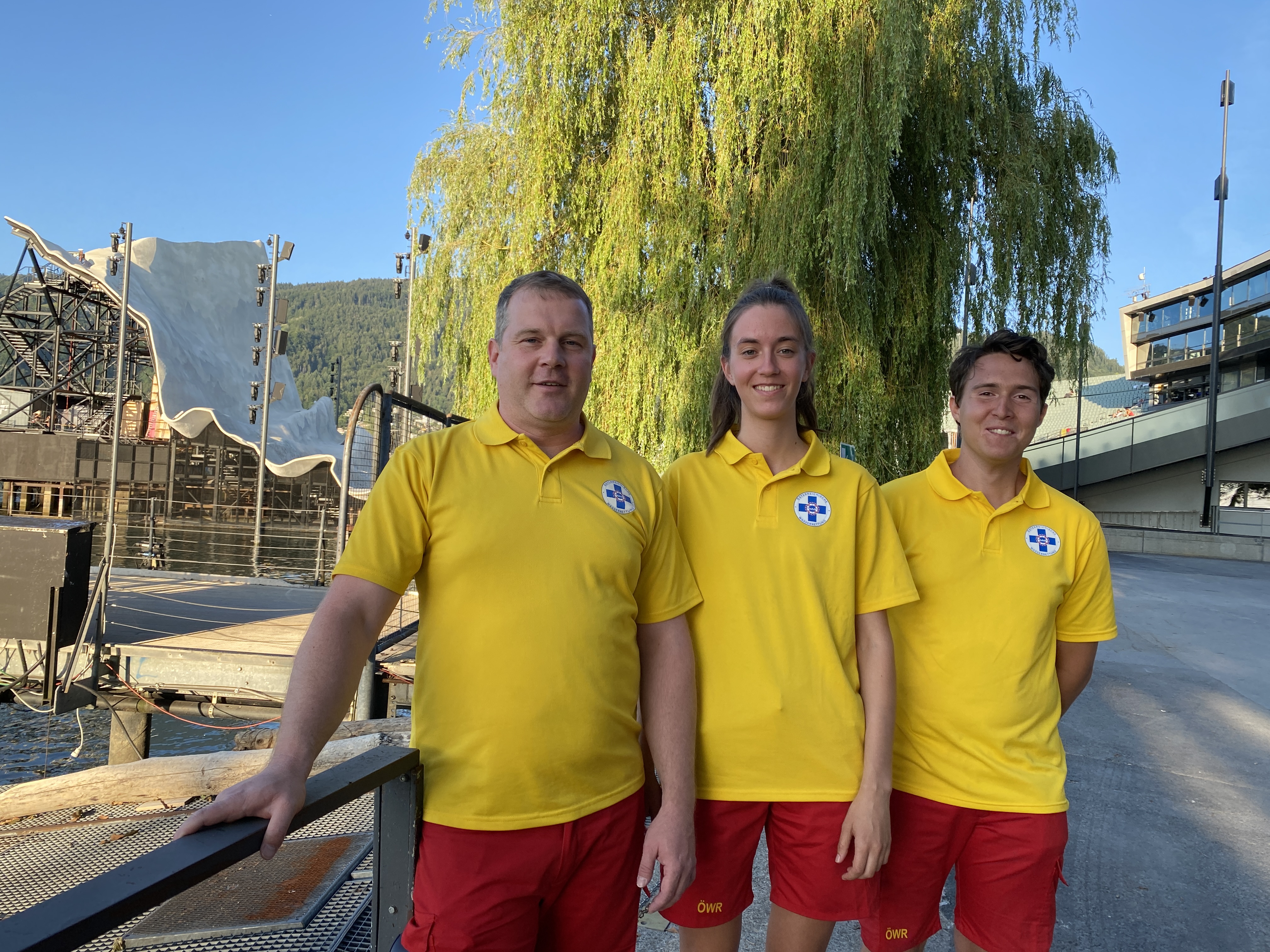 Insgesamt sind 25 Ländle-Wasserretter im Festspielsommer 2023 im Einsatz. Sie stammen aus allen Teilen Vorarlbergs – vom Bregenzerwald über Feldkirch bis nach Hard und Bludenz. Sie werden abwechselnd eingeteilt, wie Haspel zu verstehen gibt. Die Taucher der Wasserrettung sind jeweils zu dritt vor Ort. Zwei sitzen direkt vor der Seebühne unter der Tribüne, eine Person ist hinter den Kulissen eingeteilt. Für die Besucher sind sie somit unsichtbar.