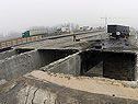 Dabei brach die Vorderachse, so dass der Lkw auf einer Brückenplattform zum Stehen kam und nicht in die Tiefe stürzte.