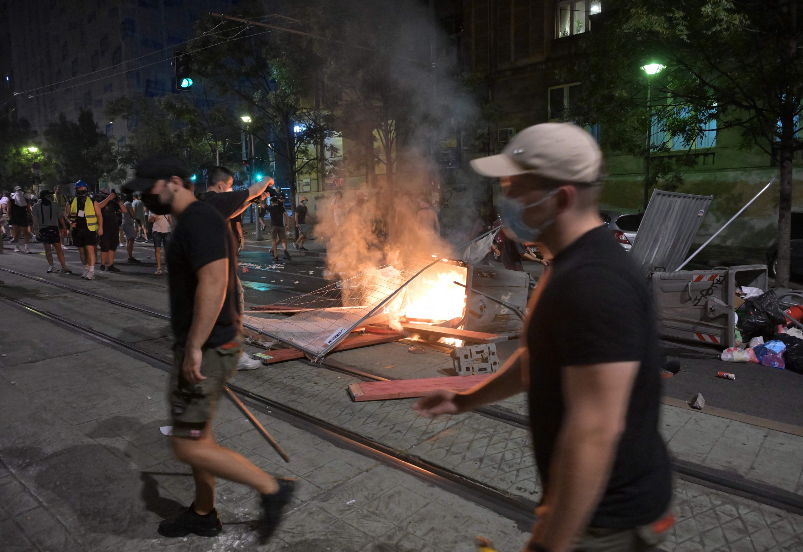 Den konkreten Anlass für einen Gewaltausbruch hatten am Dienstagabend die Geschehnisse in der Vojvodina-Kleinstadt Vrbas geliefert, wo die Anhänger der seit 2012 regierenden Serbischen Fortschrittspartei (SNS) die Regierungsgegner mit Feuerwerkskörpern, Steinen, Eisflaschen und sonstigem mehr bewarfen. In der Interpretation der Behörden waren die Geschehnisse allerdings umgekehrt verlaufen, was landesweit die Wut von SNS-Gegnern nur noch erhöhte.