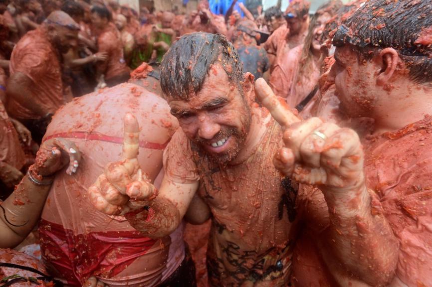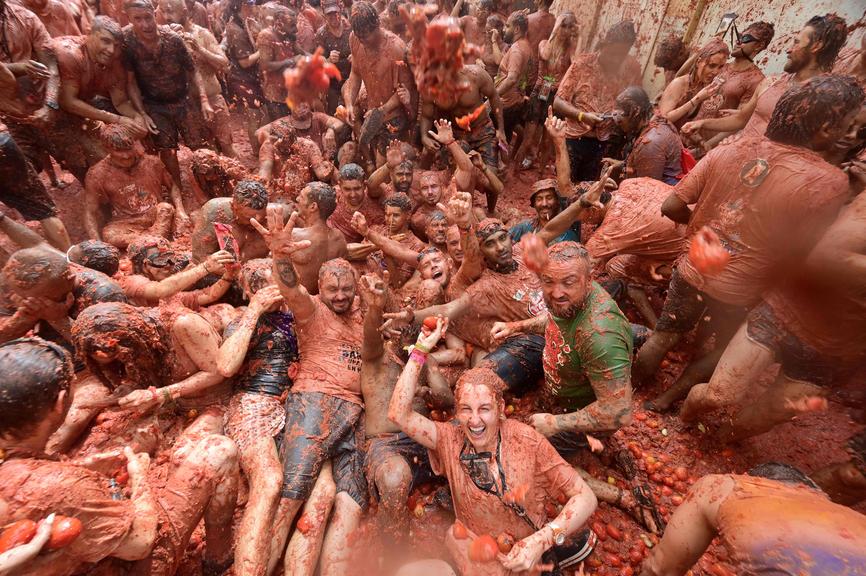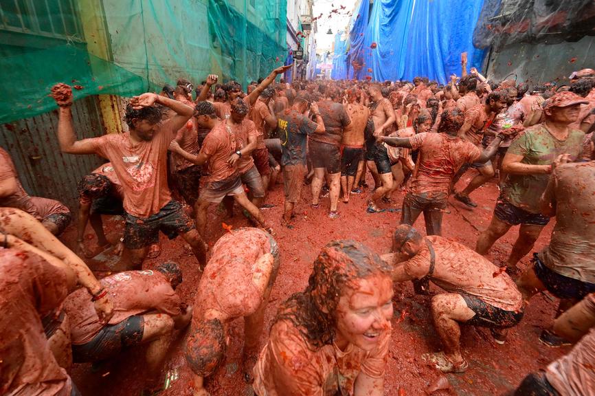 Laut dem Guinness-Buch der Rekorde handelt es sich um die größte Lebensmittelschlacht der Welt. An der 78. Ausgabe der ungewöhnlichen Party nahmen viele der rund 10.000 Bewohner von Buñol teil, vor allem aber Tausende Touristen, die eigens aus dem In- und Ausland in die Ortschaft der Region Valencia gereist waren. Der staatliche spanische TV-Sender RTVE berichtete von begeisterte Besuchern unter anderem aus China und Indien. Die Zeitung "El País" sah unter anderem "unzählige Engländer, Japaner und Australier."