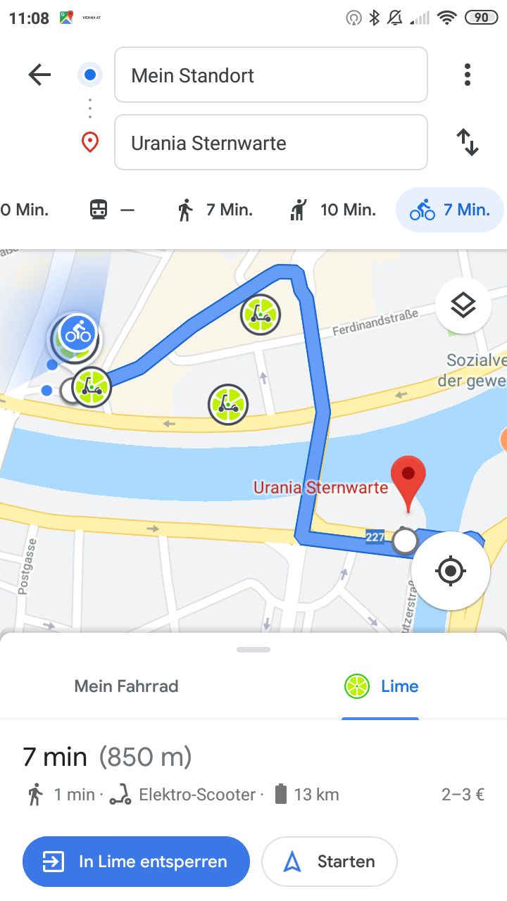 • Wien: Lime-Scooter werden in Google Maps angezeigt