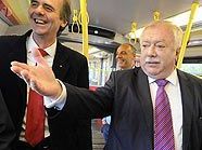 “Ein Sympathischer ist er”, lobt ein Pensionistenehepaar den Bürgermeister. Sie kannten ihn bisher nur aus dem Fernsehen, aber live wirke er noch “viel besser”. Begeistert von Häupl zeigt sich nicht nur Alt, sondern auch Jung: Ein Bub bleibt dem Stadtchef dicht auf den Fersen, um mit seinem Handy ein Erinnerungsfoto zu schießen. Als er das Bild endlich im Kasten hat, freut er sich: “Das zeige ich meiner Mama.” Ein elfjährige Mädchen stellt fest: “Für sein Alter ist er ziemlich nett.” Ihre Freundin nickt zustimmend. Eine Mutter mit Baby im Arm freut sich vor allem über das Wahlgeschenk, das Helfer verteilen: einen Apfel mit Häupl-Aufdruck. “Endlich einmal etwas Gesundes”, murmelt sie beim Erhalt der Frucht. Gelegenheit zum Danke sagen hat sie allerdings nicht, denn Häupl und sein Tross sind bereits weiterspaziert.