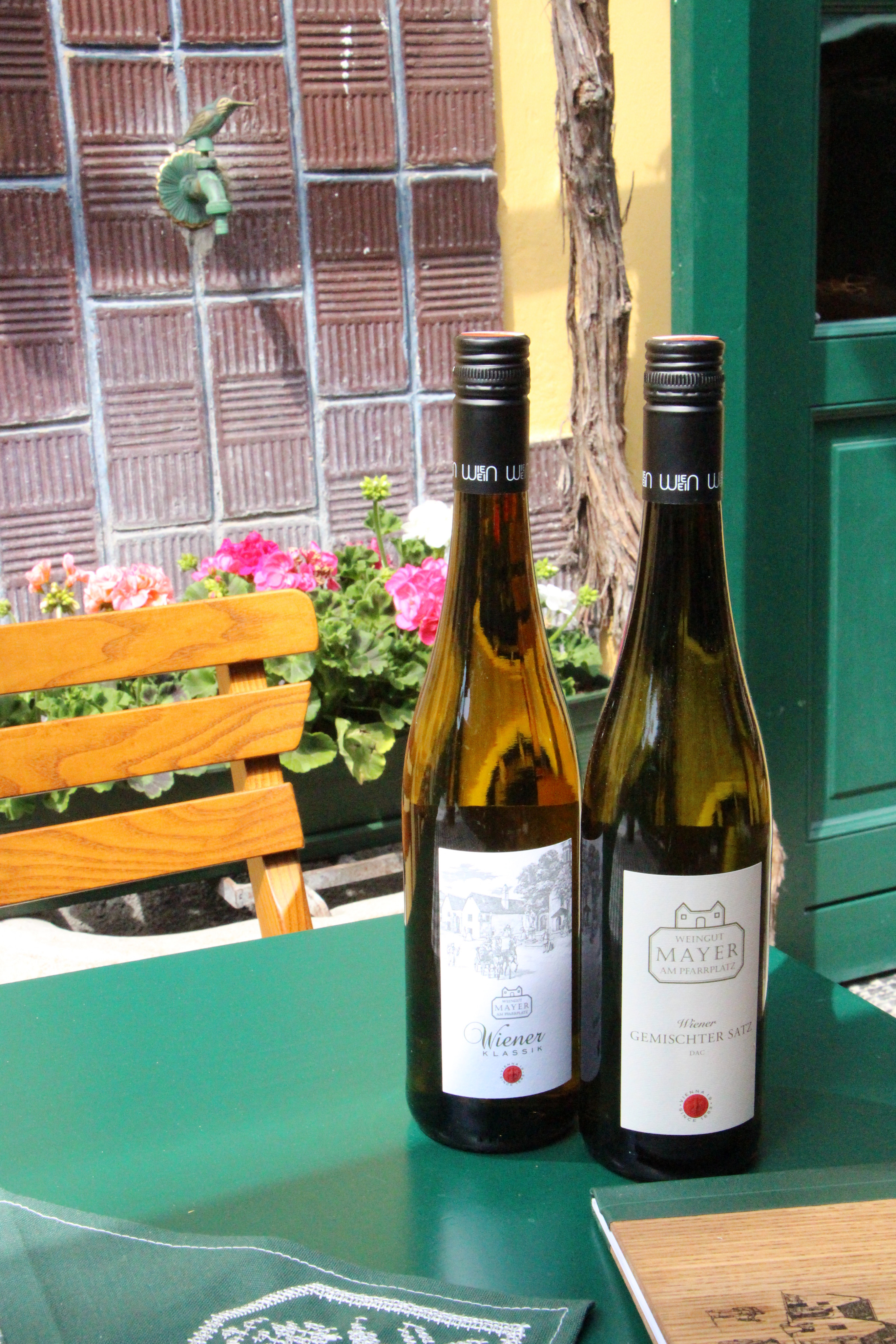 Im sonnigen Gastgarten des Heurigen „Mayer am Pfarrplatz“, in dem ein paar Schirme und Weinreben Schatten spenden, kann der Gast die Weine des Traditionswinzers genießen. Zusätzlich gibt es ein Heurigenbuffet mit Produkten aus der Region. Der Betrieb bezieht, laut eigenen Angaben, alle Speisen und Lebensmittel aus Österreich. Aufstriche und Strudel werden im Betrieb selbst gemacht.