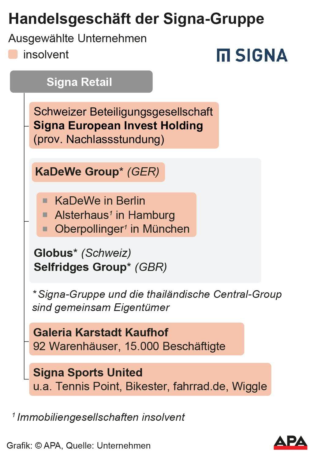 Die insolvente "Mariahilfer Straße 10-18 Immobilien GmbH" gehört laut Firmenbuch ("WirtschaftsCompass") zu jeweils 50 Prozent der Signa Prime Capital Invest GmbH und der Skyred Holding 9 mit Sitz in Luxemburg. Die Signa Prime Capital Invest ist eine Tochtergesellschaft der insolventen Signa Prime Selection AG und die Skyred Holding 9 ist ein mittelbares Tochterunternehmen der thailändischen Central Group. Die auch zur Signa und Central Group gehörende KaDeWe Gruppe wäre als Betreiber des Lamarr vorgesehen gewesen. Auf APA-Anfrage äußerte sich das KaDeWe vorerst nicht zu den Kaufhausplanungen in Wien.