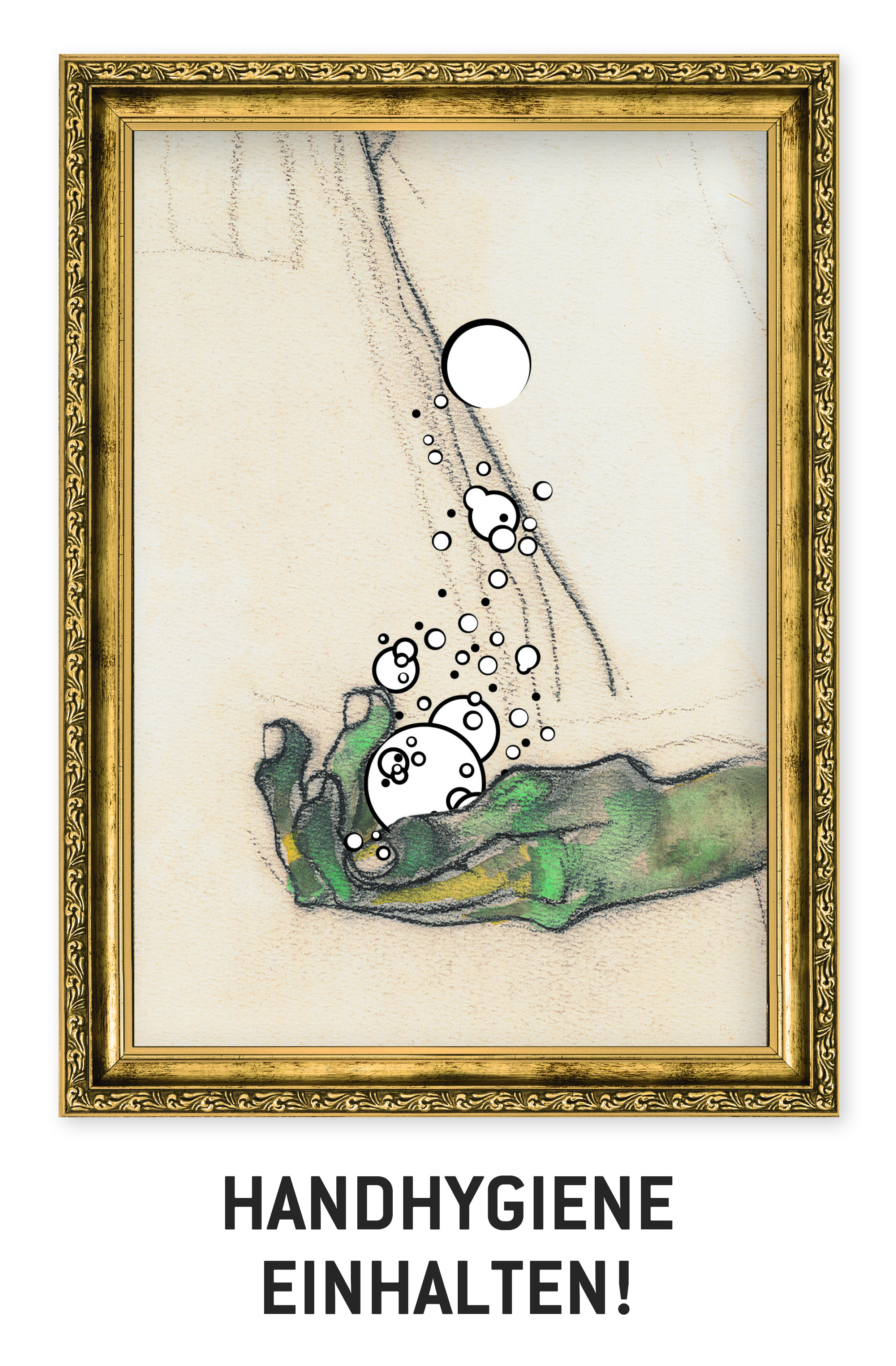 Das an Schiele angelehnte Plakat ruft zum Maskentragen auf.