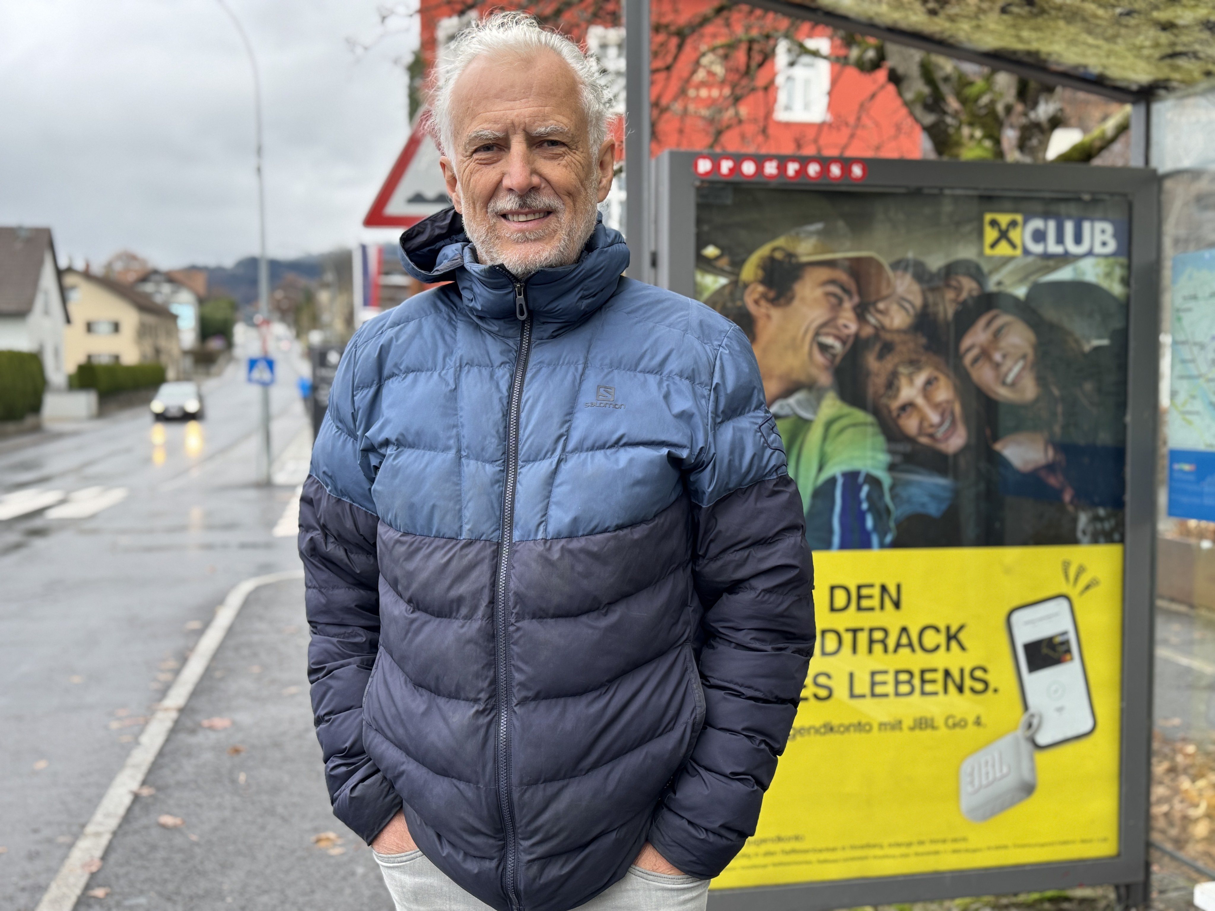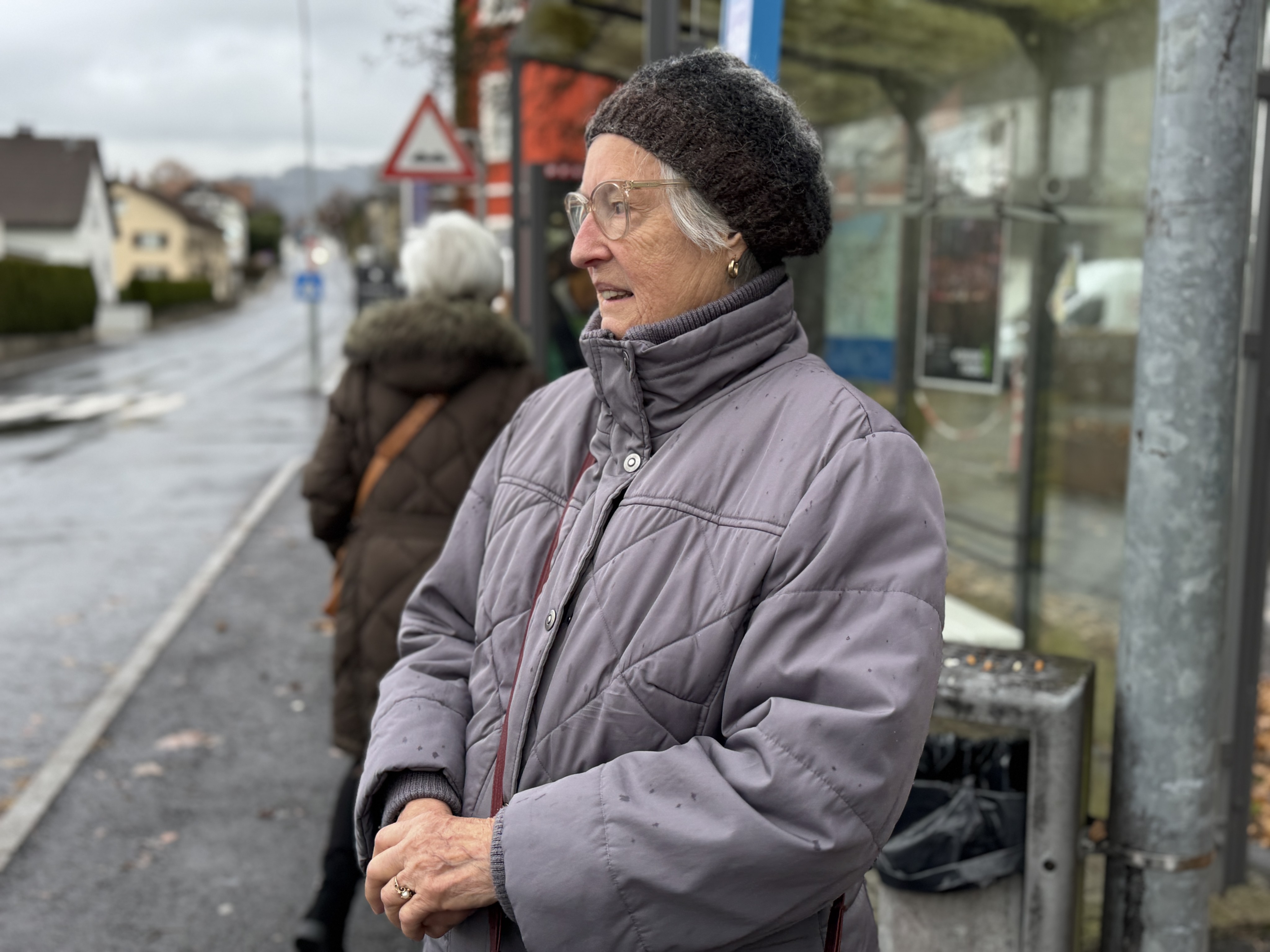 VOL.AT trifft vor Ort eine 88-Jährige, die gerade am Weg zum nächstgelegenen Supermarkt ist. Sie wartet an der Bushaltestelle auf den Stadtbus, Auto hat sie keines. Und der Weg zum Eurospar geht aufwärts – das schafft sie zu Fuß nicht mehr, erzählt Erna Bilgeri VOL.AT.