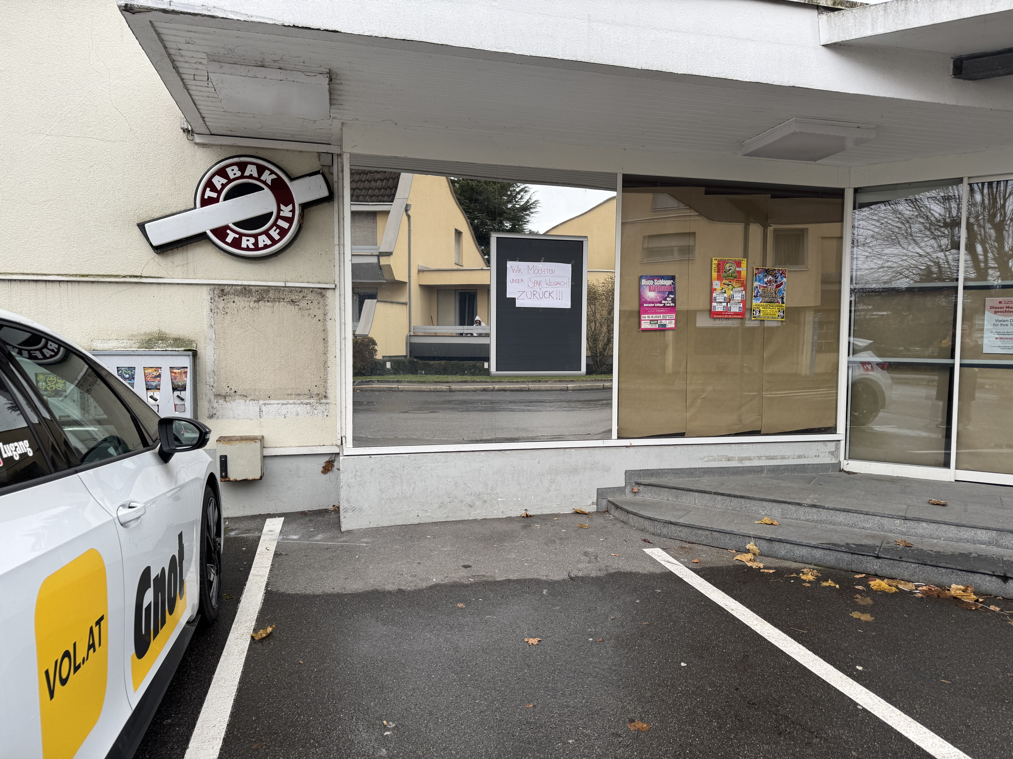 Es war lange die verlässliche und vor allem nahe Anlaufstelle für die Weidacher, um schnell Eier, Butter oder Milch einzukaufen. Beim Lokalaugenschein in der Landstraße in Bregenz wirkt das Gebäude verlassen. Die Fenster sind abgeklebt, die roten "Spar"-Buchstaben fehlen.