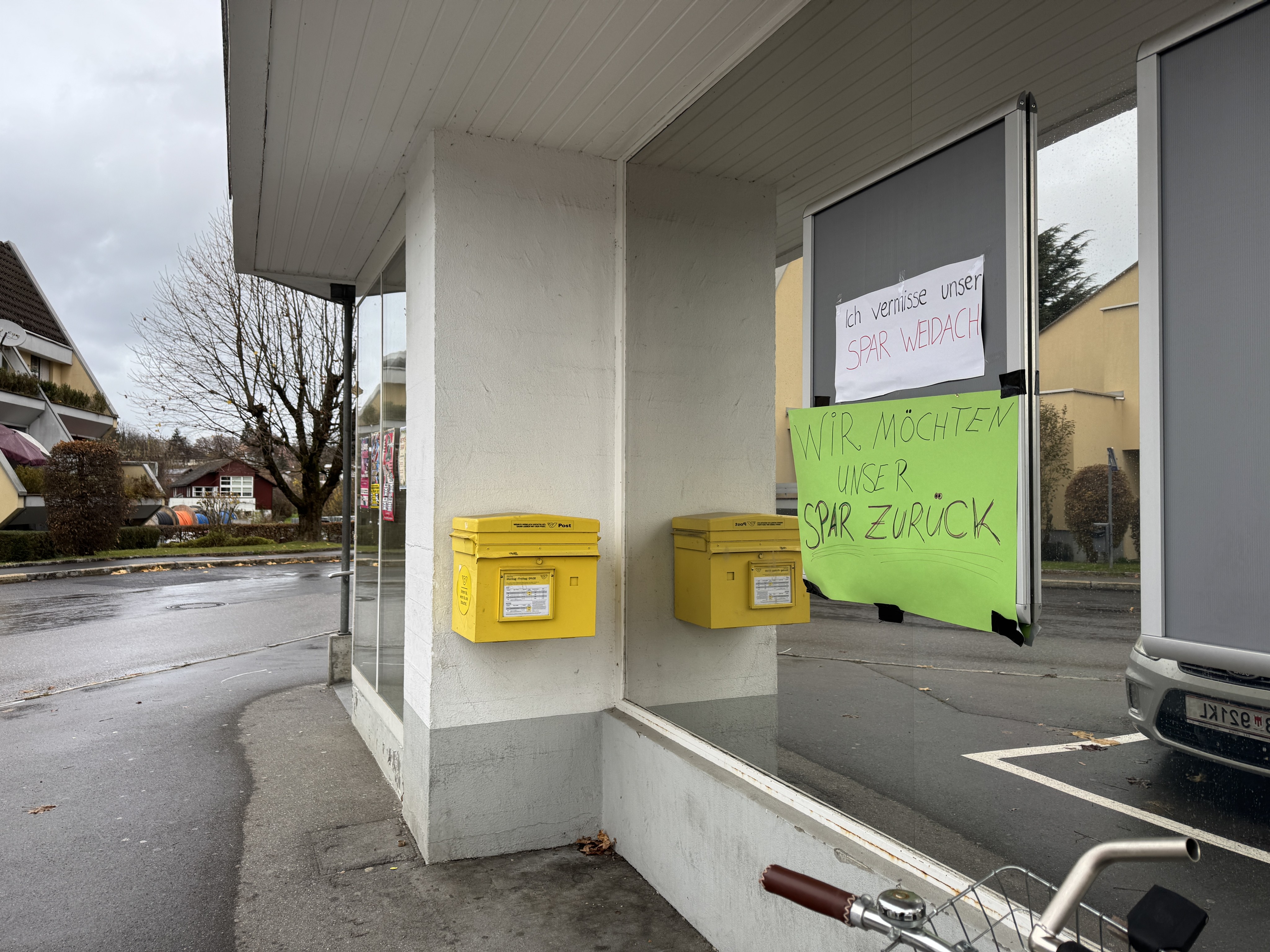 In den Köpfen der Bregenzer ist der Supermarkt deswegen immer noch sehr präsent. Das zeigen auch neue anonyme weiße und neongrüne Zettel, die am schwarzen Brett an den Scheiben kleben. "Wir vermissen unser Spar Weidach" und "Wir wollen unser Spar Weidach zurück", steht in Handschrift draufgekritzelt. Der Verfasser gibt sich selbst dabei nicht preis. Wer die Zettel dort angebracht hat, ist VOL.AT nicht bekannt. Doch der Unbekannte ist nicht alleine mit seiner Meinung.