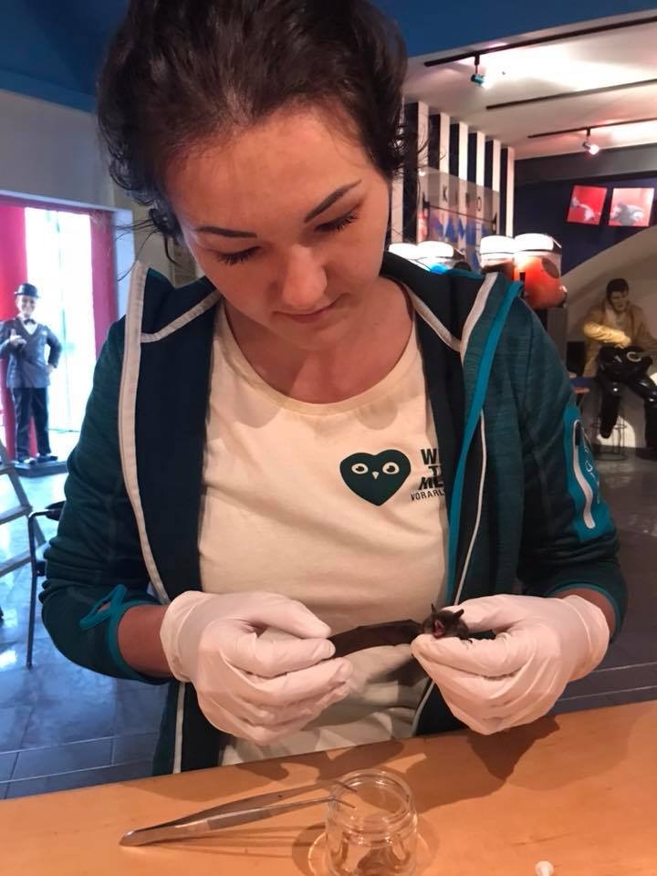 Hier zu sehen: Katarina Feurstein bei der Arbeit mit einer Fledermaus. ©Wildtierhilfe Vorarlberg/VOL.AT