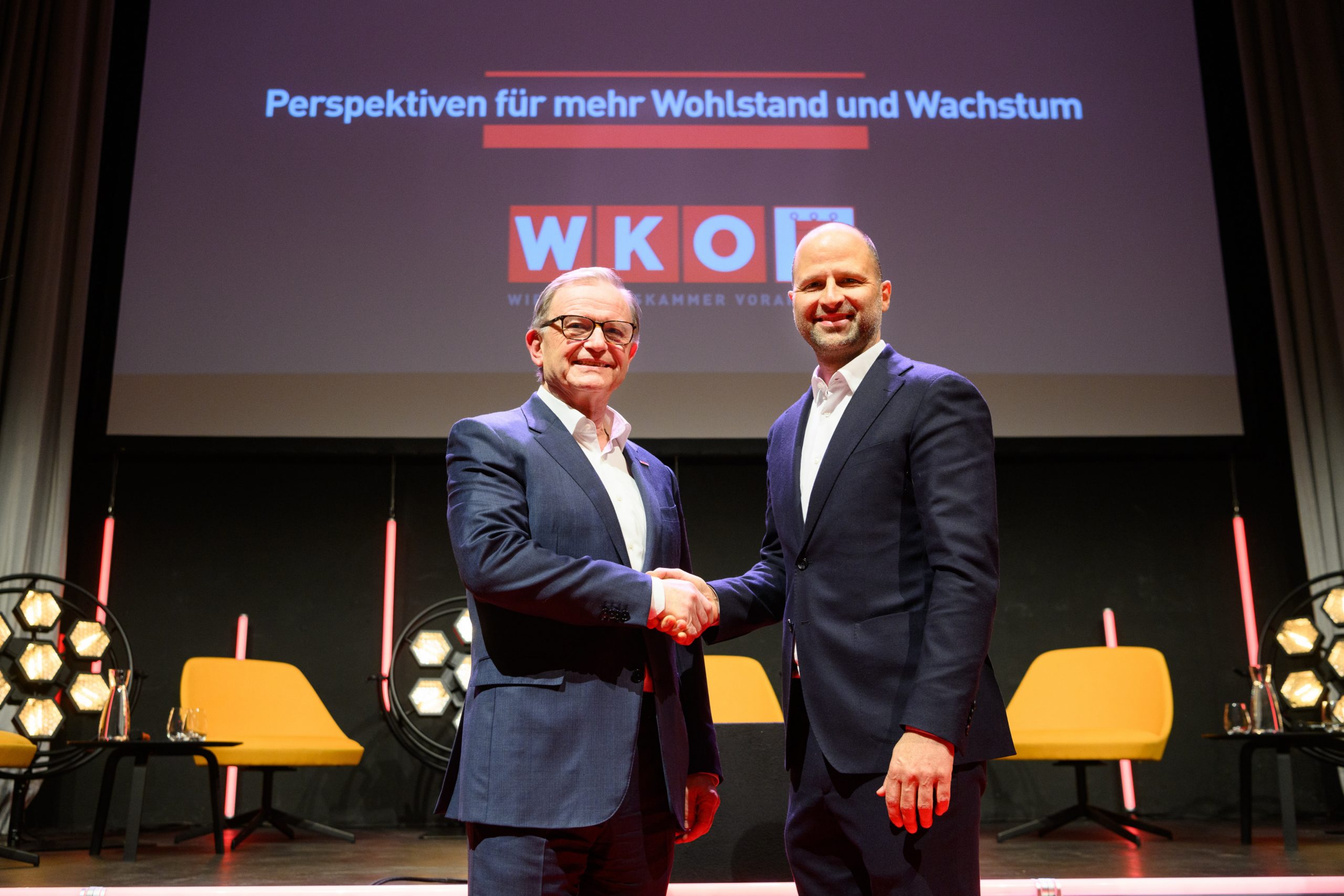 WKV-Präsident Kopf machte in seiner Eröffnungsrede auf die aktuellen Belastungen für Vorarlbergs Wirtschaft aufmerksam: „Steigende Energiepreise, geringe Produktivitätszuwächse, hohe Zinsen, Investitionszurückhaltung, Bürokratie, Fachkräftemangel und eine abnehmende Leistungsbereitschaft setzen die Wirtschaft unter Druck.“ Besonders betroffen sei die exportorientierte Sachgüterproduktion, die unter einer anhaltenden Rezession leide.