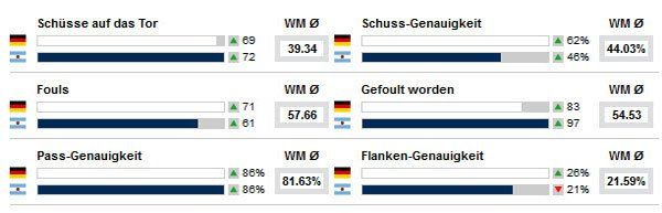 Messi, Mascherano und Rodriguez hatten auch schon die Niederlage 2006 miterlebt, als Argentinien am 30. Juni in Berlin im Elfmeterschießen ebenfalls in der Runde der besten acht an Gastgeber Deutschland gescheitert war. Der damalige Trainer Jose Pekerman verzichtete allerdings auf Messi. Ebenfalls im damaligen Kader stand Rodrigo Palacio. Für Deutschland spielten Mertesacker, Lahm, Schweinsteiger, Klose und Podolski.