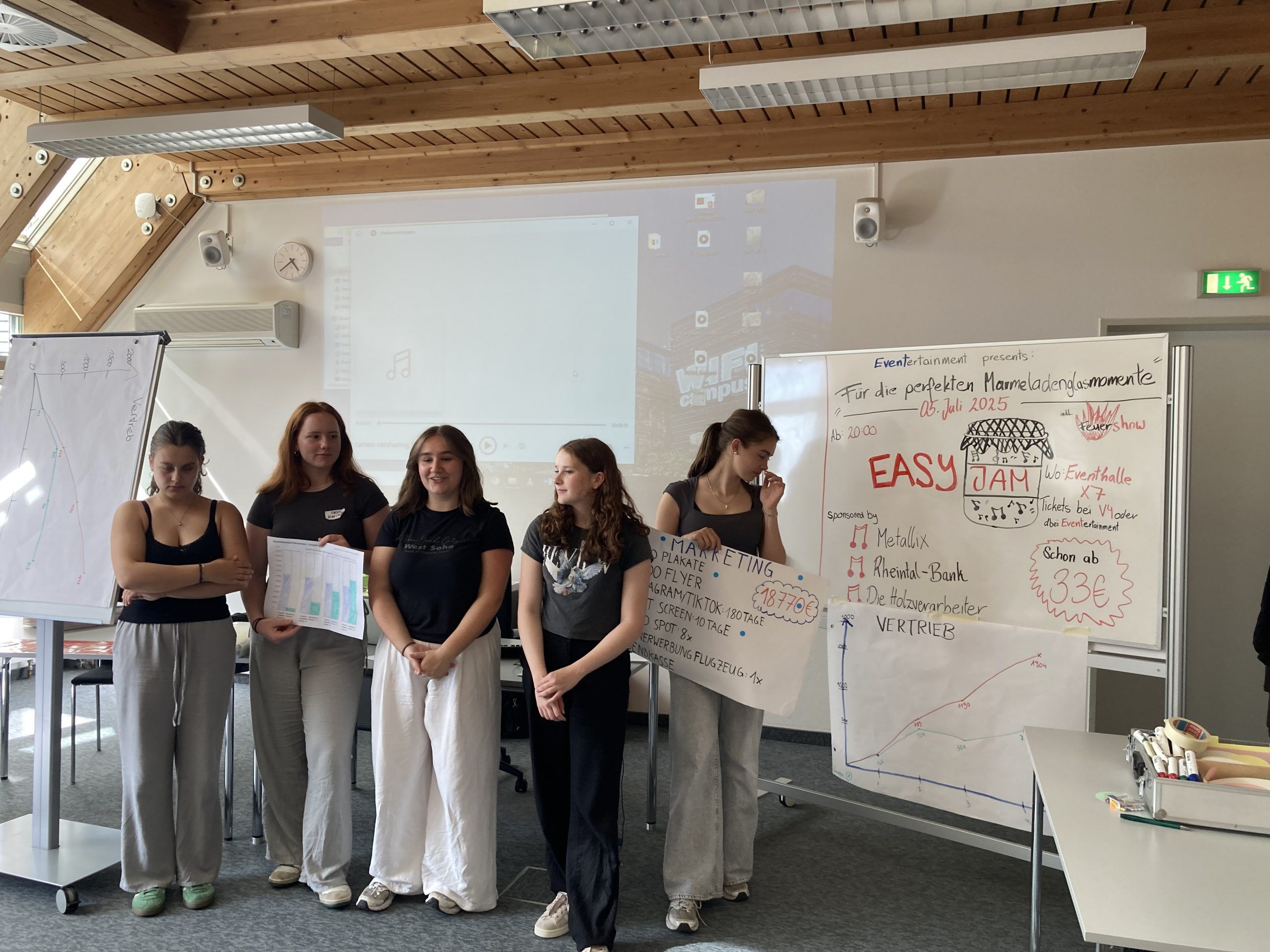 Am Donnerstag, den 20. Juni, wurden wir im Wifi Dornbirn von Mag. Angelika Walser begrüßt, die uns durch den Workshop “Gschäfta lerna” leitete. Wir wurden in fünf Gruppen aufgeteilt, von denen jede ein Konzert organisieren sollte. Nachdem wir einen Firmennamen und ein Firmenlogo gestaltet hatten, wurden die Rollen innerhalb des Teams verteilt. Diese bestanden aus dem CEO, dem Vertriebs-, dem Finanz-, dem Marketing- und dem Personalleiter. Im folgenden Planspiel sollten wir unserer Funktion entsprechend einen anderen Teil der Konzertorganisation übernehmen. Jede Gruppe hatte freie Hand bei der Erstellung ihres Konzerts, über die spielende Band bis hin zur Werbung und dem Ort. Auch auf das Budget musste geachtet werden, damit alle getätigten Ausgaben später durch den Ticketverkauf wieder hereingeholt werden konnten. Zusätzlich gab es die Möglichkeit, von Firmen im Gespräch mit ihren Mitarbeitern ein Sponsoring zu erhalten und so weitere Geldmittel zu lukrieren. Am Ende des Workshops wurden die Ergebnisse, d. h. die erwirtschafteten Einnahmen und verkauften Tickets, präsentiert. Der Workshop war eine großartige Sache und wir haben sehr viel über die Organisation von Events gelernt.