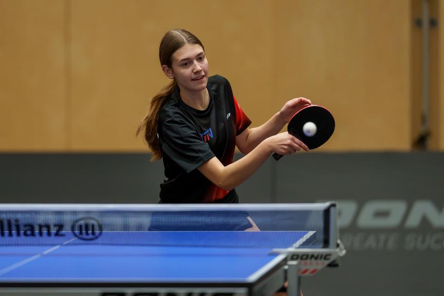 Für Maya Dünser vom UTTC Altach begann der Tag schon früh und gleich am Center Court. Nervös und sichtlich beeindruckt vom Rahmen, stand die 19-Jährige der Salzburgerin Sophia Pichler gegenüber. 0:3 hieß es am Ende, ein Spiel, das ihr Potenzial nur erahnen ließ. Gegen Nicola Salzburger aus Tirol war sie deutlich besser im Spiel. Der Lohn blieb dennoch aus: kein Satzgewinn, aber der Beweis, dass sie mithalten kann.