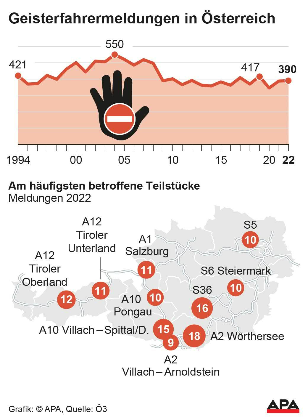 390 Geisterfahrer im Jahr 2022 in Österreich