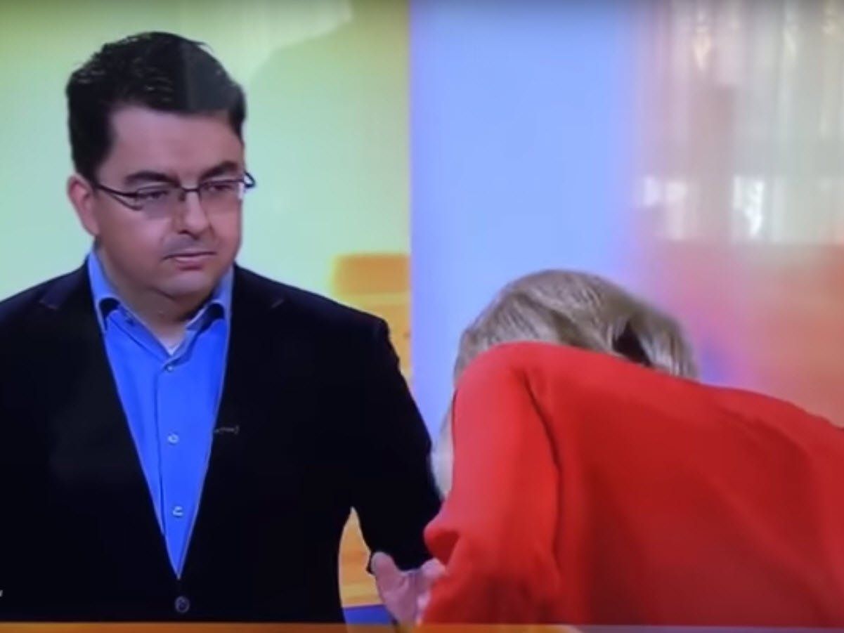Von Kienlin analysierte in der Mittagssendung gerade mit einem Politik-Professor die Ergebnisse der deutschen Landtagswahlen vom Sonntag, als sie bei den möglichen Koalitionen in Sachsen-Anhalt plötzlich mitten im Satz abbrach und langsam nach vorne kippte.