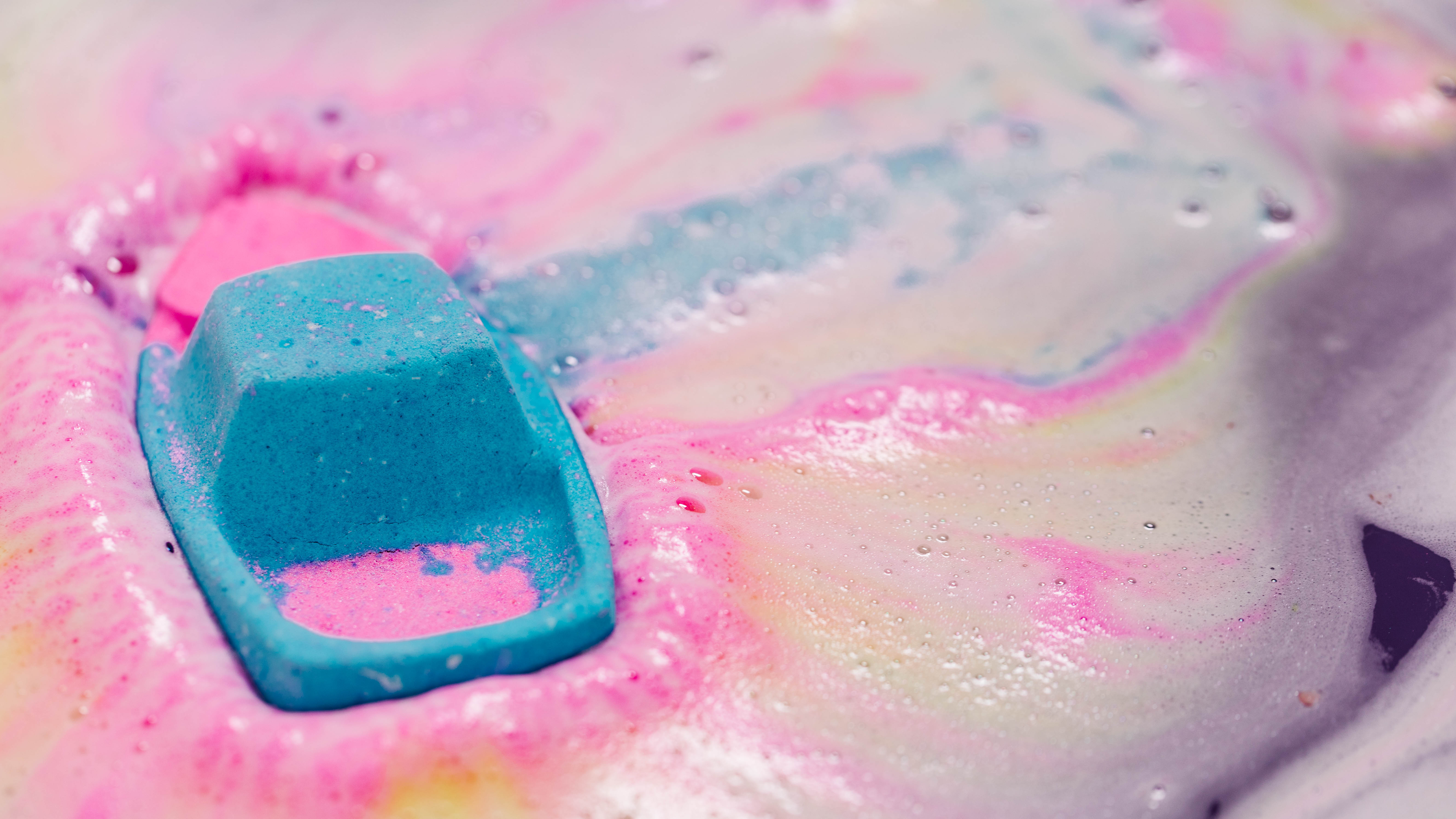 Erst beobachtet man fasziniert ein rosa und hellblaues Blubbern dieser Badebombe nach beiden Seiten, dann entfaltet sich ein regelrechtes Sonnenuntergangsspektakel in der Badewanne, das den Einbruch der Dämmerung bis zum Übergang zur tintenblauen Nacht simuliert. "Love Boat" bietet Bath Art vom Feinsten, dazu weiches, pflegendes Wasser, das einen betörenden Duft nach Orangenblüten und Zitrone verströmt. Ein echter Valentinstagswinner.