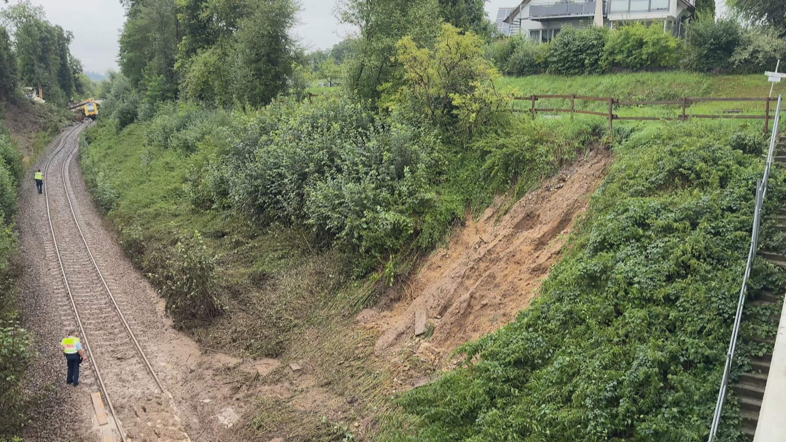 "Das Wasser löste einen Erdrutsch im Böschungsbereich zu den Gleisen hin aus, was wiederum wohl die Entgleisung verursachte", teilten die Ermittler am Montag mit. Die Untersuchungen seien noch nicht abgeschlossen. Es gebe derzeit keine Hinweise auf eine Fremdeinwirkung.