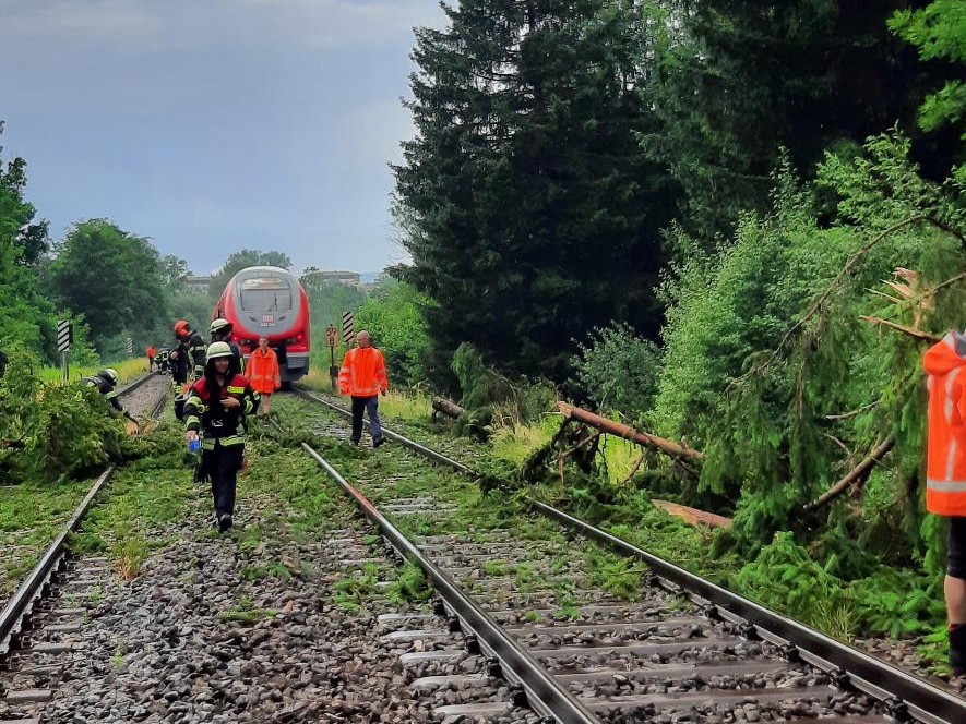 Am frühen Donnerstagnachmittag waren auf der Bahnstrecke Buchloe-Lindau auf Höhe des Kemptener Bachtelweihers aufgrund der Unwetterlage drei Bäume auf die Gleise gestürzt. Gegen 14:20 Uhr fuhr ein Regionalexpress (Buchloe-Kempten), der mit 52 Reisenden besetzt war, in diesen Bereich ein. Der Triebfahrzeugführer erkannte die Hindernisse und leitete sofort eine Schnellbremsung ein, konnte jedoch einen Aufprall nicht verhindern. Der Triebwagen wurde dadurch im vorderen Bereich beschädigt. Der Triebfahrzeugführer veranlasste umgehende eine Streckensperrung, die bis 17:32 Uhr andauerte.