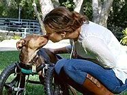Dabei hatte das heute elf Monate alte Tier denkbar schlechte Ausgangsbedingungen: “Scooby-Roo” wurde ohne Vorderläufe geboren und in South Central Los Angeles ausgesetzt. Gemeinsam mit seiner Schwester “Sophie” wurde er von Tierfreunden in einem alten Autowrack in der Nähe einer Schnellstraße entdeckt – blutüberströmt, weil er zur Fortbewegung ohne Vorderbeine über den Asphalt rutschte. Die Finder brachten beide Hunde in ein Tierasyl in Santa Monica, und dessen Leiterin Sheila Choi bemühte sich in einem Massen-E-Mail um Unterstützung für ihren behinderten Schützling.