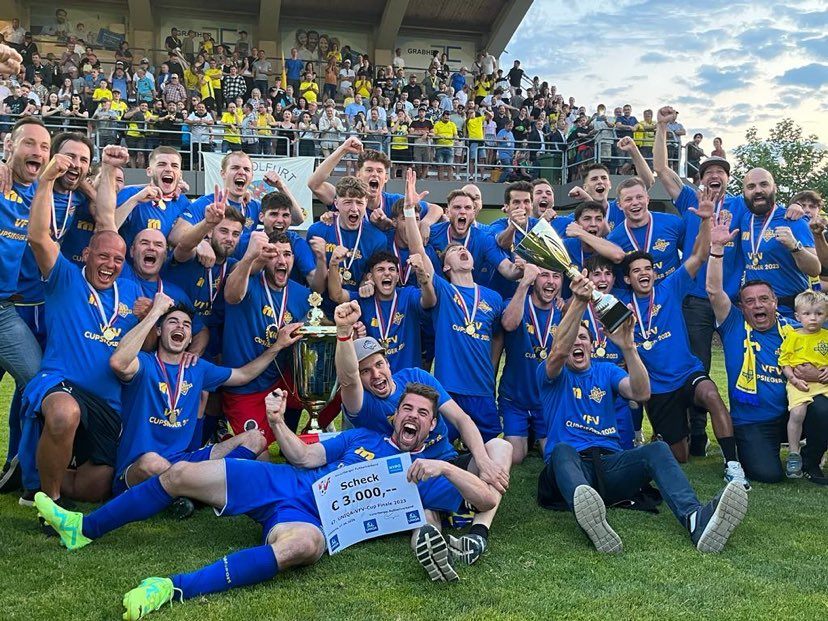 33 (!) Jahre musste Meusburger FC Wolfurt auf seinen zweiten Vorarlberger Cupsieg warten. Der Tabellenzweite aus der VN.at Eliteliga aus der Hofsteiggemeinde wurde seiner Favoritenrolle mehr als gerecht und siegte vor der tollen Zuschauerkulisse vor 1300 Fans im Hohenemser Herrenriedstadion gegen Vorarlbergliga Meister Holzbau Sohm FC Alberschwende verdientermaßen mit 2:0. Mittelfeldspieler Alessandro Petrovic brachte Wolfurt in Front. Der erst 19-jährige Eigenbauspieler hämmerte nach seinem Stangenschuss im zweiten Versuch den Ball ins gegnerische Tor (47.). Der Defensivkünstler zählt in der nun zu Ende gehenden Saison zu den vielen positiven Entdeckungen der Hofsteig-Truppe. Fünf Minuten vor dem Schlusspfiff besorgte Mücahit Özdemir den umjubelten 2:0-Endstand (85.). Nach Traumvorlage von Felix Moosmann traf der Außenbahnspieler via Querlatte ins Tor. Regisseur Benjamin Neubauer wurde als bester Spieler des Finales ausgezeichnet. Nach dem sensationellen Aufstieg in die Regionalliga West nach 53-jähriger Pause ist der Erfolg von FC Wolfurt im heimischen Pokalbewerb die große Krönung eines Megafrühjahr. Kapitän Simon Mentin durfte den Wanderpokal und die Siegprämie von 3000 Euro in Empfang nehmen. Der Jubel im Lager der mehreren hundert mitgereisten Wolfurt-Anhänger kannte keine Grenzen. „Ist fast unmenschlich was meine Mannschaft im Frühjahr geleistet hat, das kann man gar nicht in Worte fassen. Bin unglaublich stolz auf das gesamte Team“, war Wolfurt Erfolgscoach Joachim Baur voll des Lobes. In der knapp 9000 Einwohner zählenden Marktgemeinde Wolfurt wird in den nächsten Tagen sicher groß gefeiert. Der Favorit Wolfurt war in der Spielzeit die klar spielbestimmende Mannschaft. Zwangsweise gab es für den Tabellenzweiten aus der VN.at Eliteliga auch gute Einschussmöglichkeiten. So konnten Kubilay Kalkan (6./18./46.), Marian Zehrer (16./Kopfball), Simon Mentin (30./Kopfball), Benjamin Neubauer (42.), Frederik Meier (45./Freistoß), Mücahit Özdemir (58./Querlatte) und Benjamin Neubauer (68.) die Chancen nicht verwerten. Das Bruderduell im Hause Muxel ging an Wolfurt Präsident Stefan Muxel (34). Die Statistik in den direkten Duellen spricht auch für Wolfurt: Sechs Siege und fünf Mal gab es eine Punkteteilung. Alberschwende Goalie Julian Hinteregger verhinderte mit Glanzparaden eine noch höhere Niederlage. Wolfurt wird als Cupsieger im ÖFB-Pokal die Ländle Farben vertreten. Zwanzig Vereine trugen sich bislang in die lange Siegerliste des VFV-Cupsieg ein. Nach Egg (2021), Bizau (2010) und Sulzberg (2007) gelang es auch dem vierten Wälderklub nicht den heimischen Pokalbewerb zu gewinnen. Die Trophäe auf Landesebene bleibt in dieser Region weiter ein Rotes Tuch. Nichts wurde es Alberschwende mit dem Gewinn des so erhofften Double. „Leider hat meine Truppe die große Qualität im wichtigen Moment nicht abrufen können. Es überwiegt aber die Freude über die Finalteilnahme“, meint Alberschwende Coach Rene Fink (31). Die Wälder hatten während der gesamten Spielzeit keine nennenswerte Torchance. Als Trostpflaster gab es für den Verlierer 1500 Euro in die Mannschaftskassa.